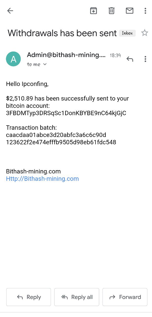 My withdrawal is always successful with BITHASH-MINING