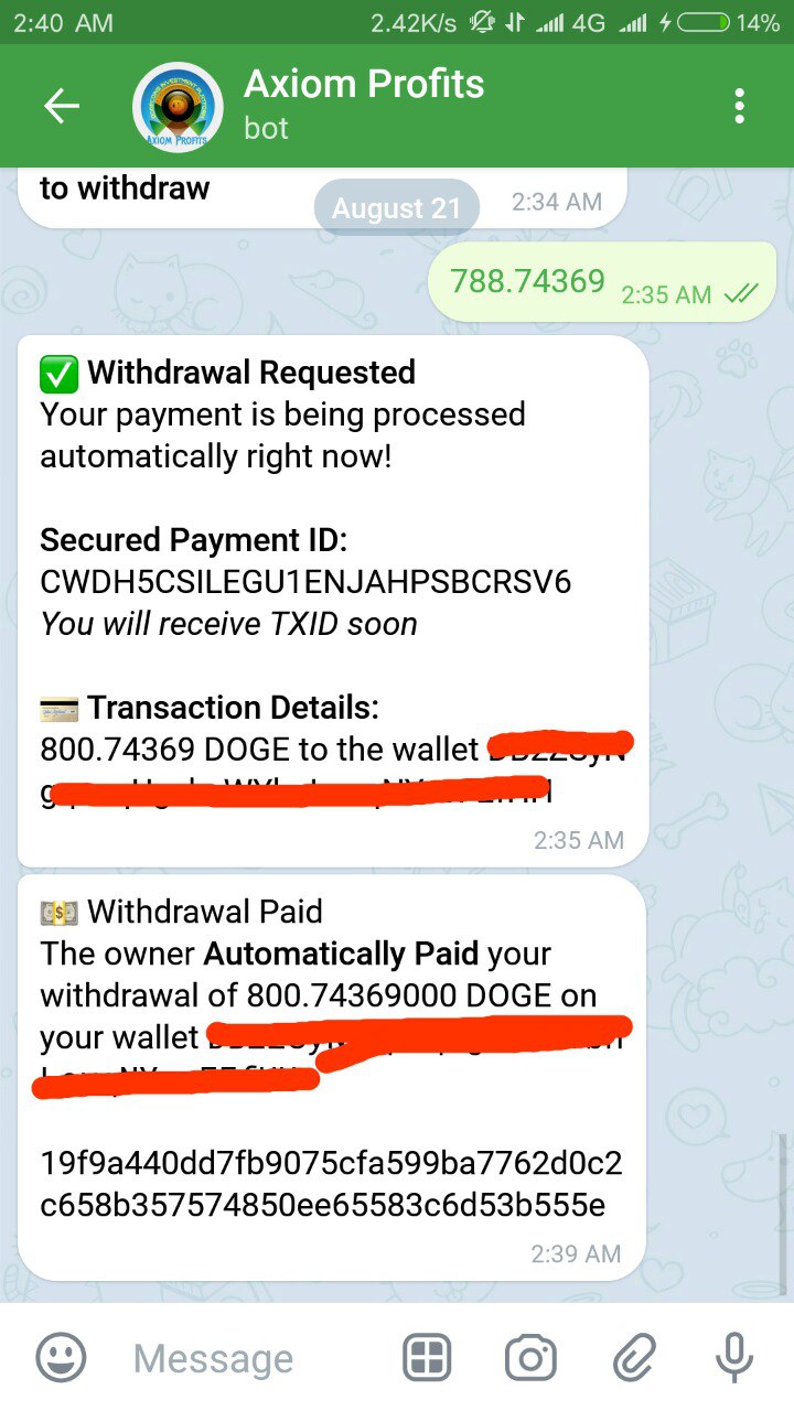 Mini investment: 0.00025 BTC, 0.015 LTC, 25 DOGE, 0.0012 ETH