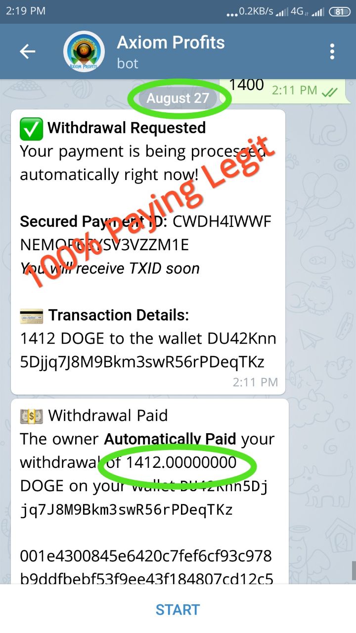 🎖Legit 🎖632 Doge instantly WD AxiomProfit Bot