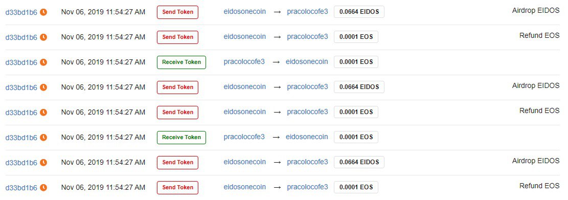 Причиной, вероятно, послужил запущенный в пятницу эирдроп проекта EIDOS, который позволяет пользователям «майнить» токены при помощи незадействованных CPU-ресурсов. Пользователь, отправляющий 0,0001 EOS на адрес контракта EIDOS, получает возврат своих средств плюс определённую сумму в EIDOS. Поскольку EIDOS имеет свою цену ($0,029 в момент публикации), держатели EOS мотивированы к участию в кампании.