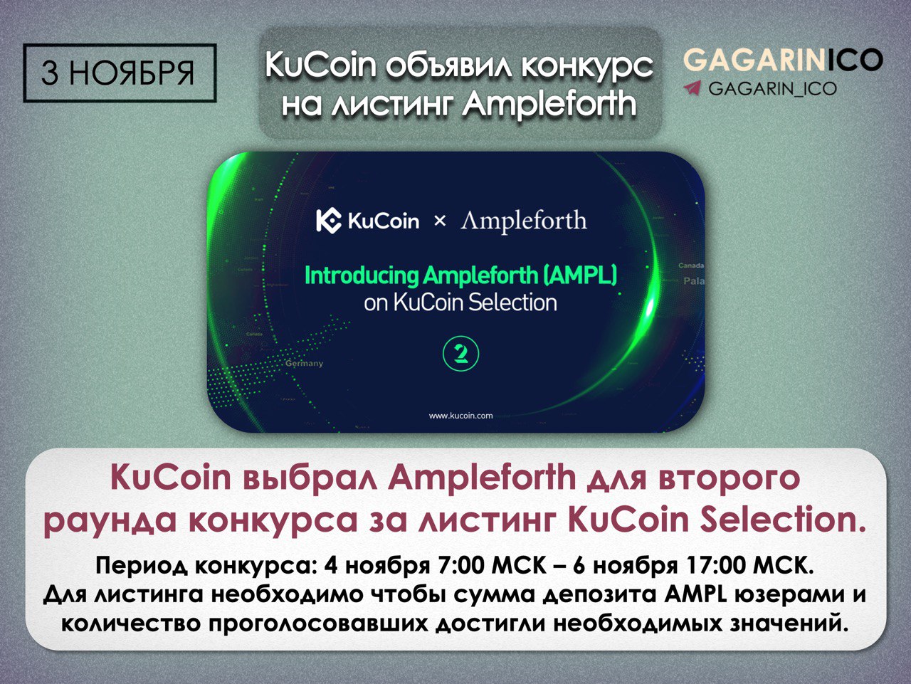 KuCoin объявил конкурс на листинг AmpleforthKuCoin выбрал Ampleforth для второго раунда конкурса за листинг KuCoin Selection.