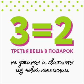 • 2=1 на многие детские товары - второй подарок равный и меньший по стоимости в подарок!