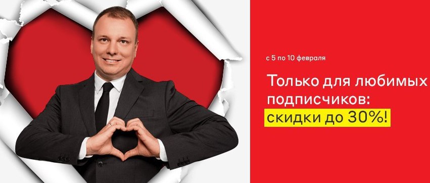 ▫️До 9 февраля продлится акция «Техника любви» со скидками до 40% на товары из специального каталога. Скидка действует по промокоду