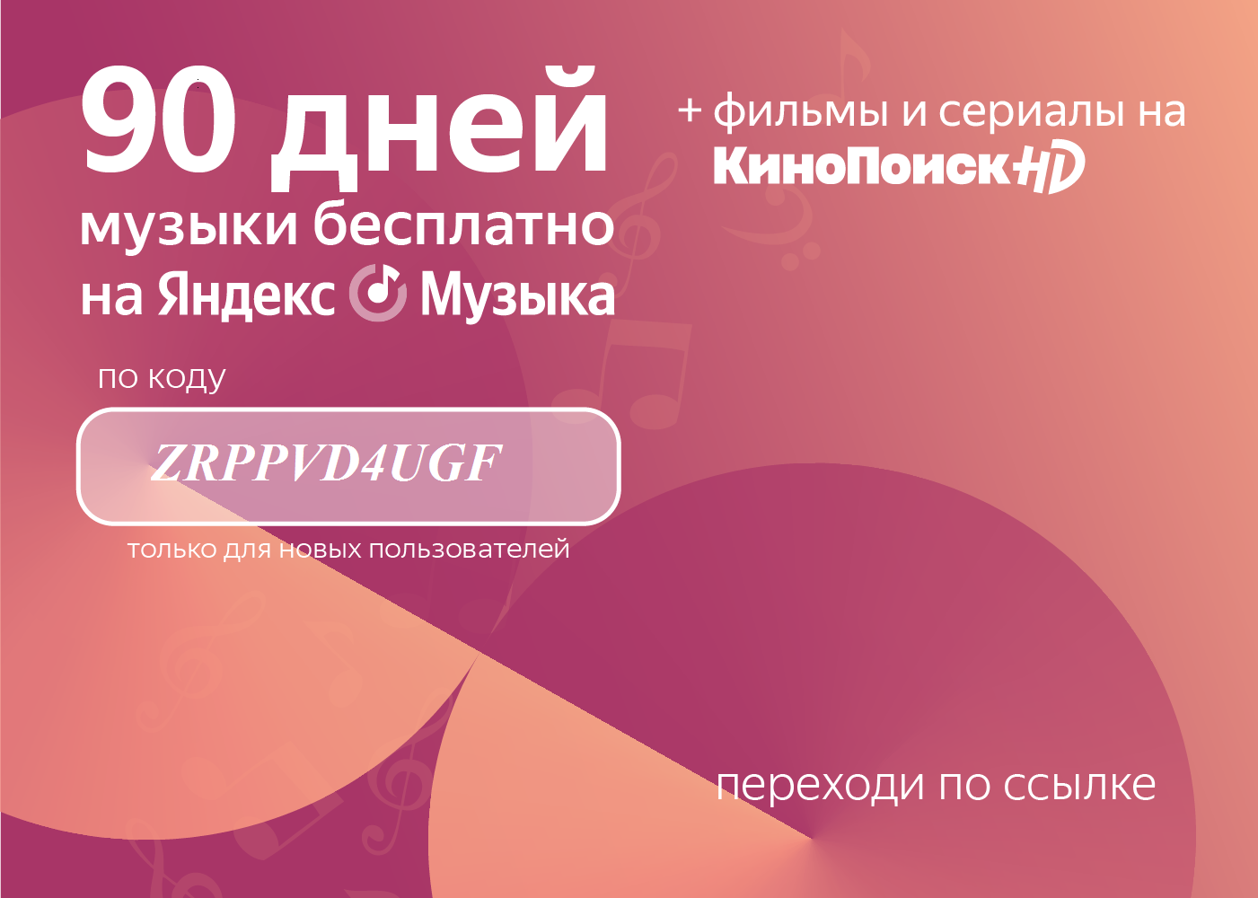 В сервисе Яндекс.Музыка есть отличный промокод, который даст доступ к музыке, и не только, на целых 90 дней. Прослушивание без рекламы, в высоком качестве и возможность скачивать треки и слушать их оффлайн. Но это еще не всё, также ты получишь доступ к функциям Яндекс Радио, то есть можно слушать его без рекламы и пролистывать любые песни. И помимо всего этого, откроются бонусы от Яндекс Плюса - это кешбэк с поездок на такси или каршеринге, с билетов на события, с покупок маркета и многое другое. В общем предложение действительно стоящее и если ты еще ни разу не пробовал, то мой тебе совет)