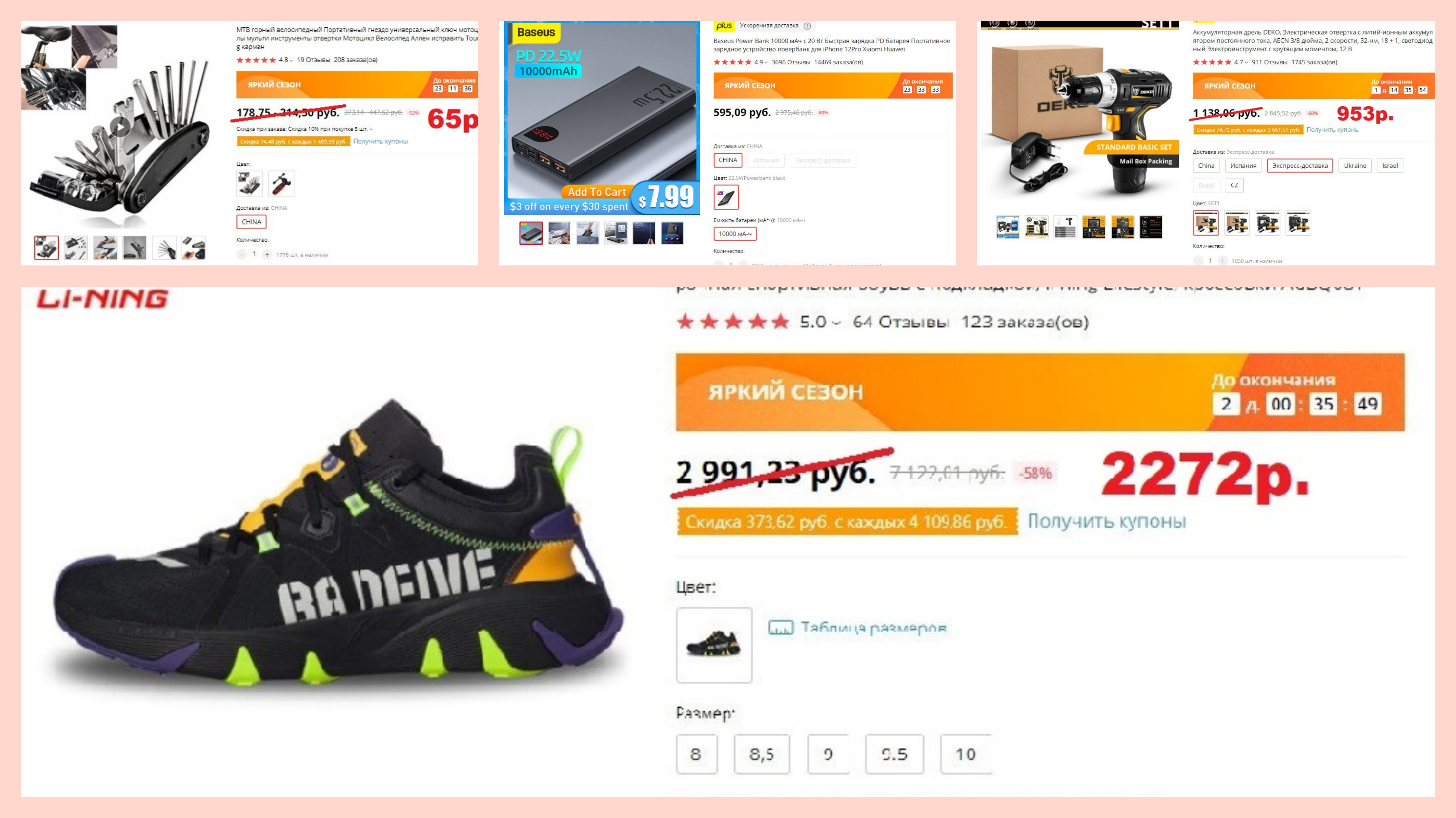 VKPRIZ500 за 2272р.2272р. вместо 7099р. Отличные кросы с хорошими отзывами, да еще и с большой скидкой. На подошве под стелькой прослойка из силикона, при ходьбе мягкие, удобные.▫️ Повербанк Baseus Power Bank 10000 мАч за 595р.595р. вместо 2975р. Если брать два, то с купоном продавца (74р. от 1117р.) цена будет 1116р.1116р. за оба. Отличное предложение, 10000 мАч, 20 Вт, быстрая зарядка, 2 USB разъёма, Type-C разъём, поддержка PD 3.0, толщина 14 мм. Годный девайс, советую взять, лишним точно не будет.