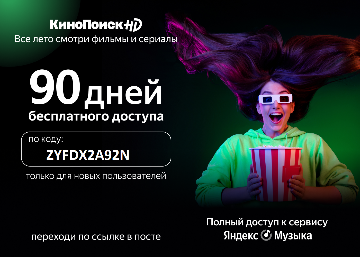 30 дней бесплатной подписки, но к сожалению количество активаций ограничено и хватит его не на всех. Смотреть кино по подписке можно не только с телевизора, но и с компьютера, смартфона или планшета. Для регистрации переходи по