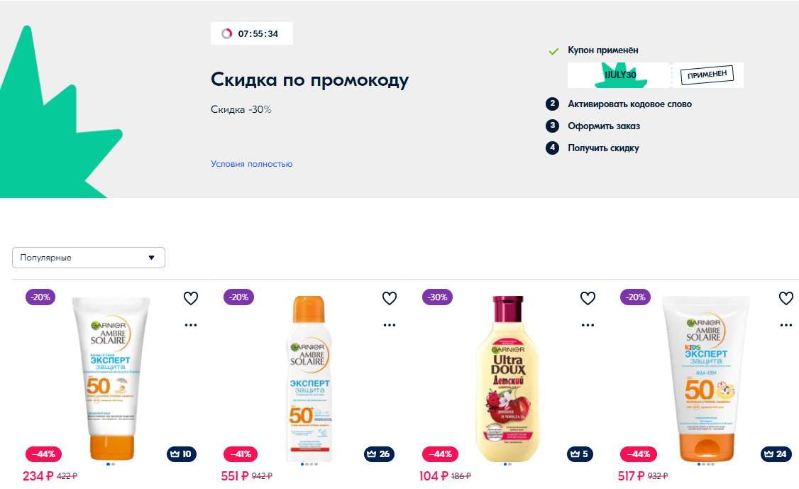 промокоду: JULY30. Круто, что промик суммируется с действующими скидками, а они, между прочим, доходят до