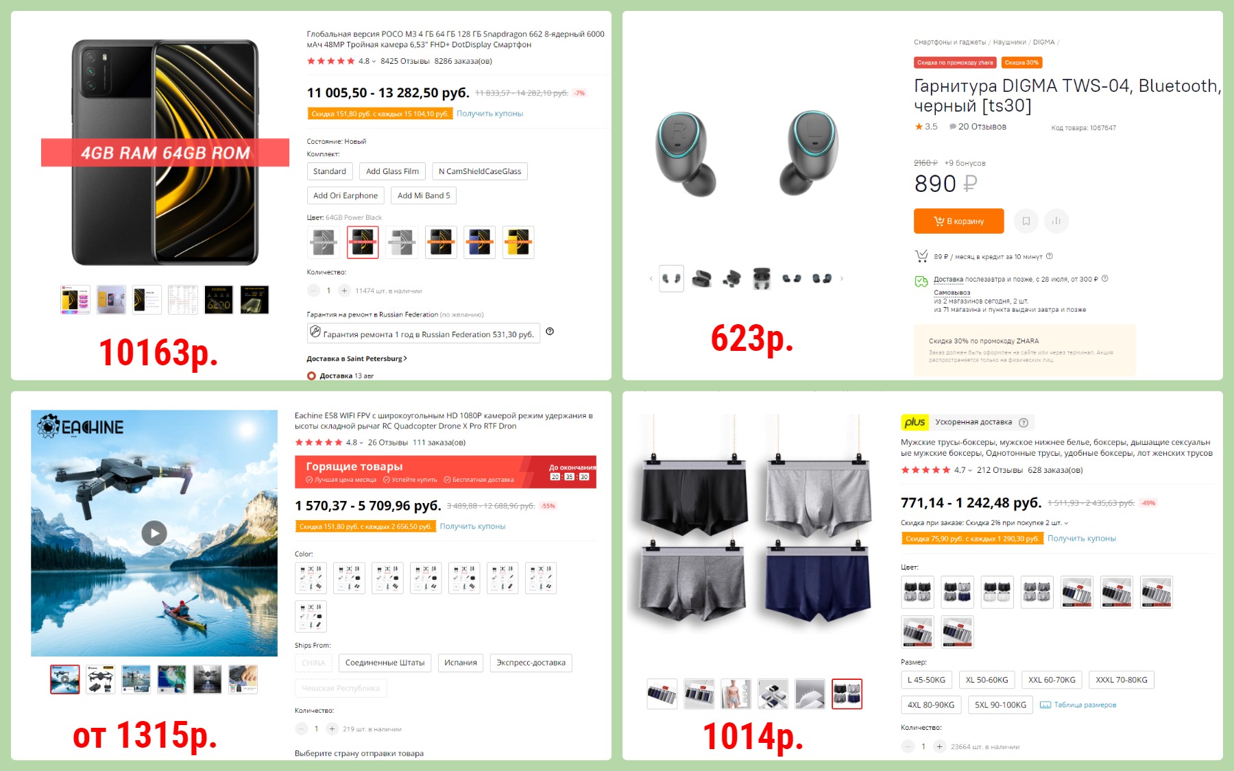 LET150 за 1014р1014р. По отзывам все довольны, качество хорошее, ткань мягкая, доставка быстрая. Добавляйте в корзину наборы из 8 трусов, применяйте промокод и оформляйте заказ.▫️Смартфон POCO M3 4/64Gb с промокодом: