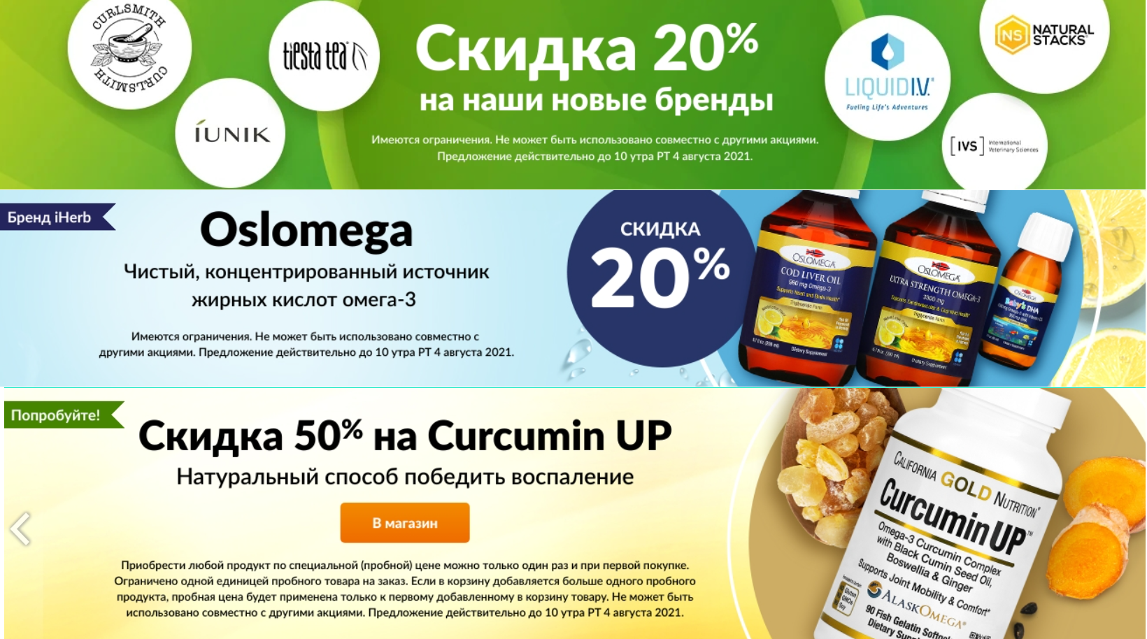 На этой неделе со скидкой 20% распродают Oslomega и товары новых брендов. По промокоду всегда можно снизить стоимость ещё на 5%, выбирай препараты и заказывай их ещё дешевле. Напомню, что официальное приложение iHerb снова доступно для России. И для него есть промокод 5$ от 50$ на первый заказ. Переходи по ссылкам ниже и скачивай 👇