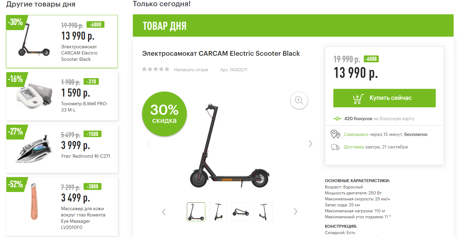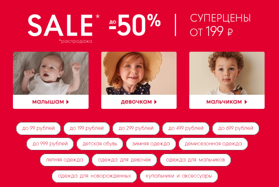 • каждый день тематические распродажи со скидками до 75%;