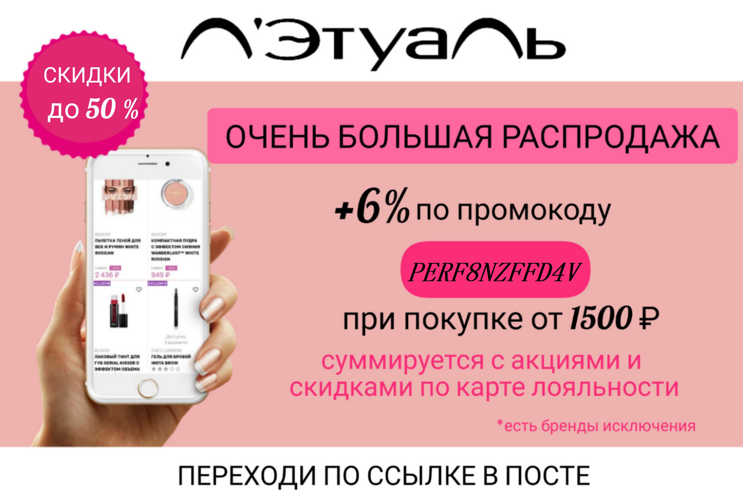 BEQUICK. Сработает код при любой сумме заказа, а скидка будет равномерно распределена среди трёх товаров. Промокод дает скидку в размере стоимости товара по наиболее низкой цене среди трех товаров акции, поэтому для большей выгоды клади вещи по приблизительно равной стоимости. В акции участвуют все товары с этих страниц: для мужчин / для женщин. SEPHORA