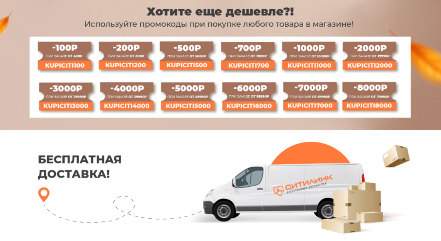 DA1000 можно получить скидку 1000р. при заказе от 5000р. Для этого необходимо зарегистрироваться и ввести наименование кода в корзине в соответствующее поле при оформлении заказа на сайте или в мобильном приложении. Код сработает на всё, кроме брендов исключений, проверяй в корзине.More TV