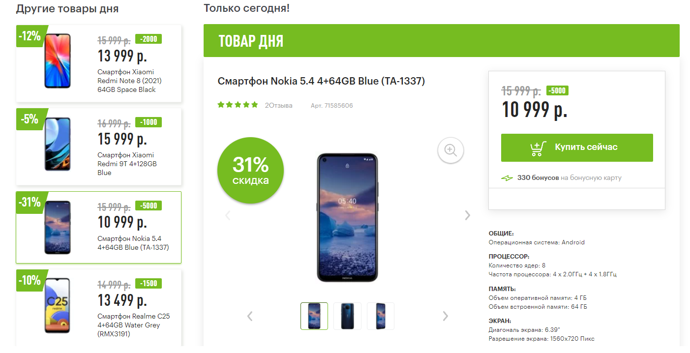 15% на продукты и напитки от 2000р. до 8000р." и "Скидка
