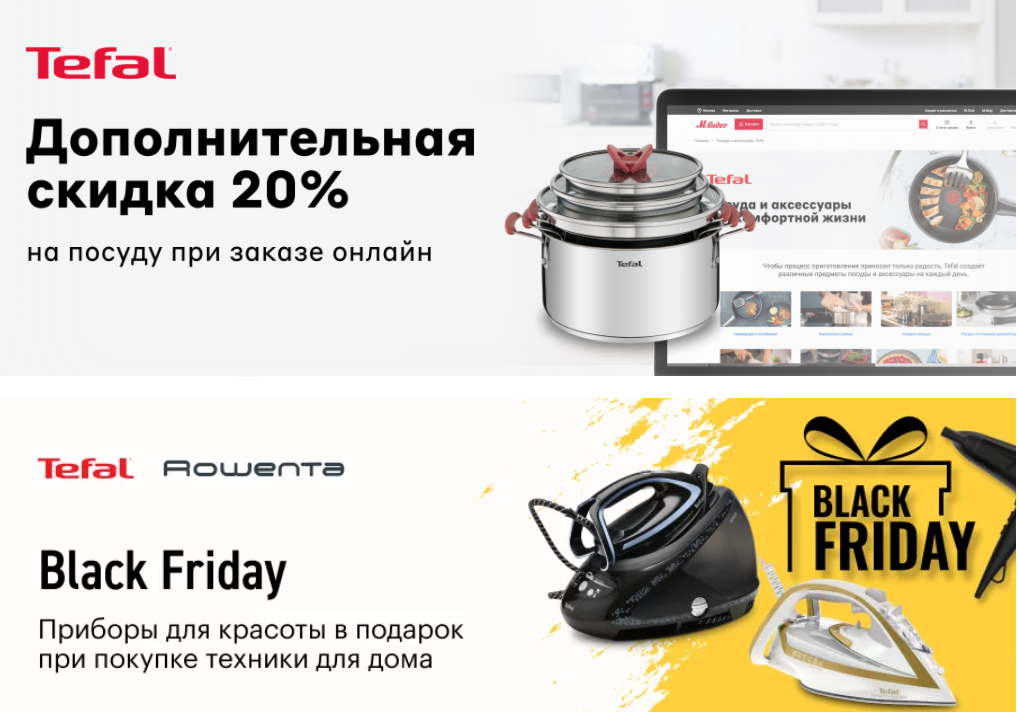 ▫️Скидка 20% на посуду Tefal. Выбирай посуду со страницы акции, в корзине вводи промокод: