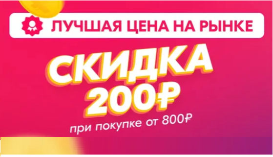 доп.скидку 200р. от 800р. Для этого вводи по очереди промокоды: