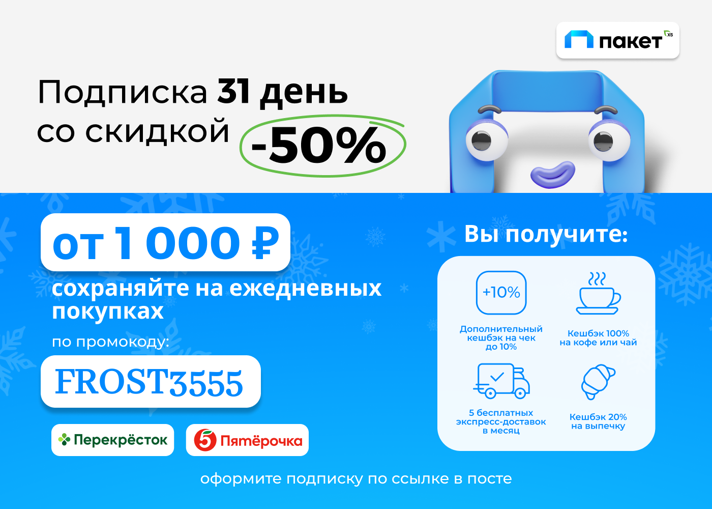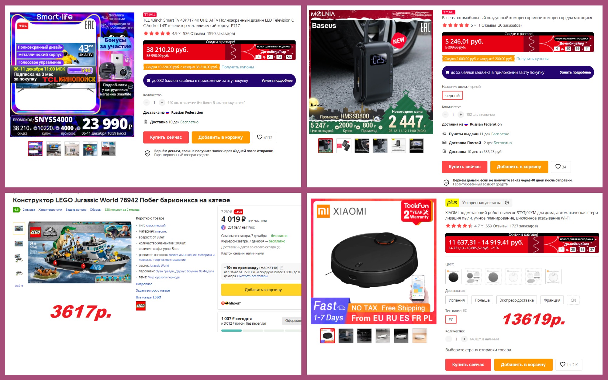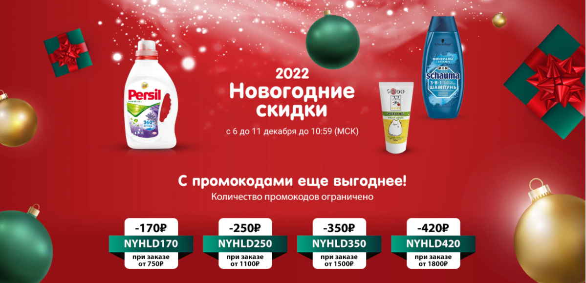 50%, а ассортимент очень разнообразный. В каталоге найдёте самые актуальные сейчас товары: новогодний декор, игрушки, елки, гирлянды. А кроме них много повседневных товаров, продуктов, товаров для животных и еще много всего. Времени остается все меньше, успей купить лучшие варианты до 23:00 по Мск!