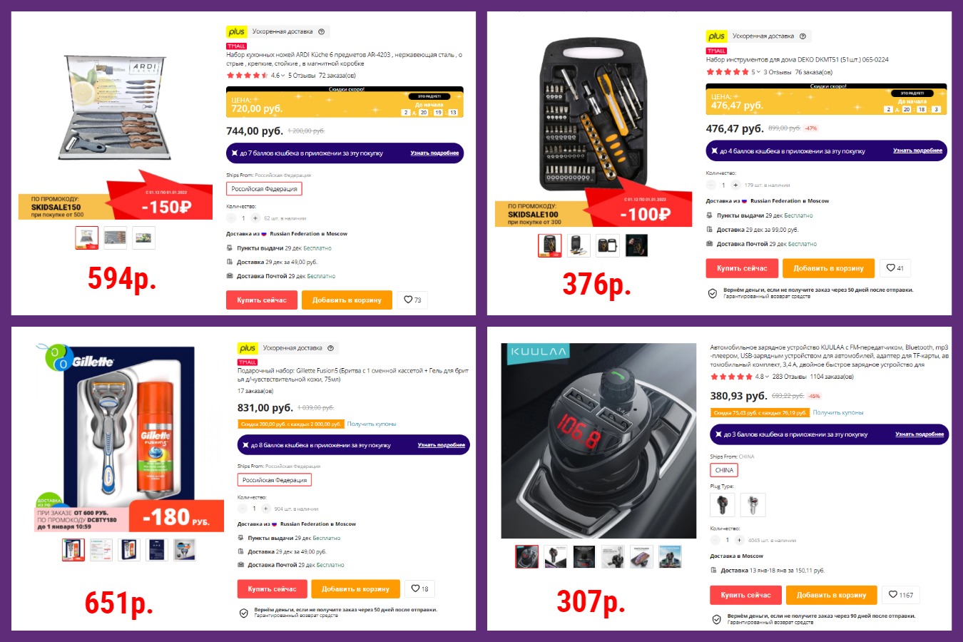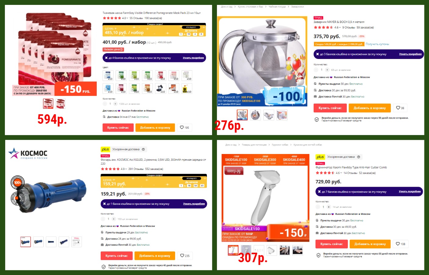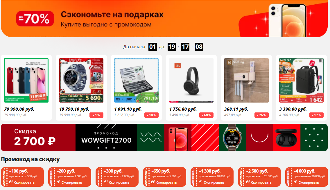 • Каждый месяц промокод на скидку 200р. от 1000р. для AliExpress