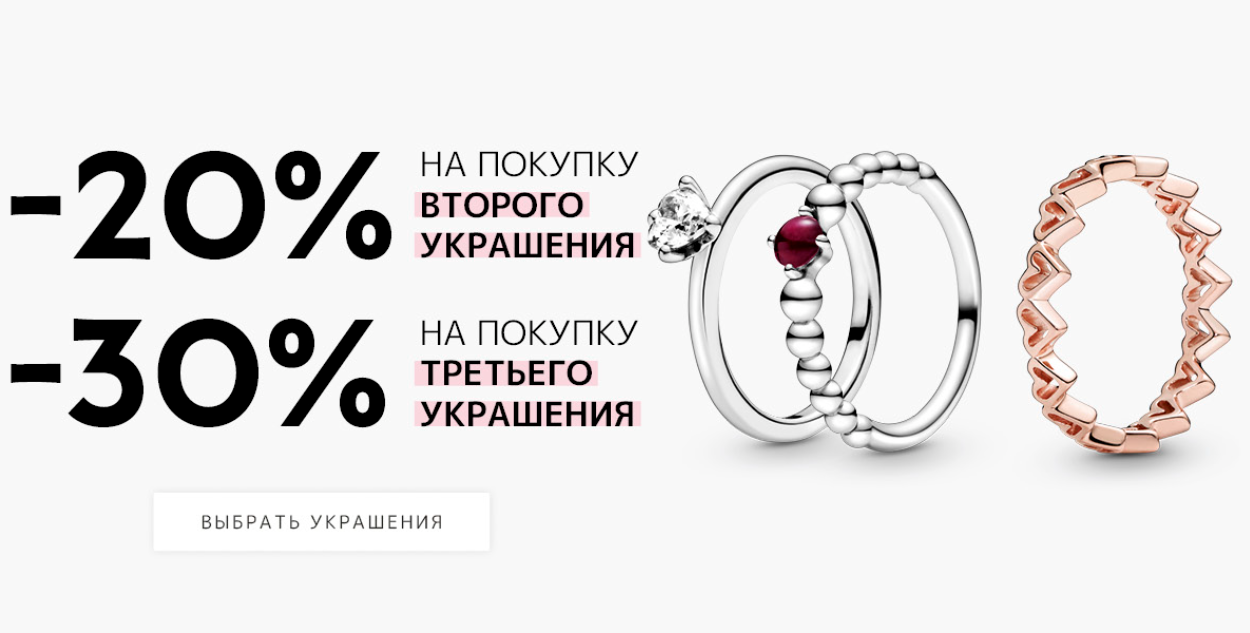20% на покупку второго ювелирного украшения и