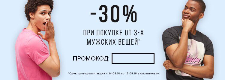 При покупке от 3-х вещей скидка 30% по промокоду MAN30