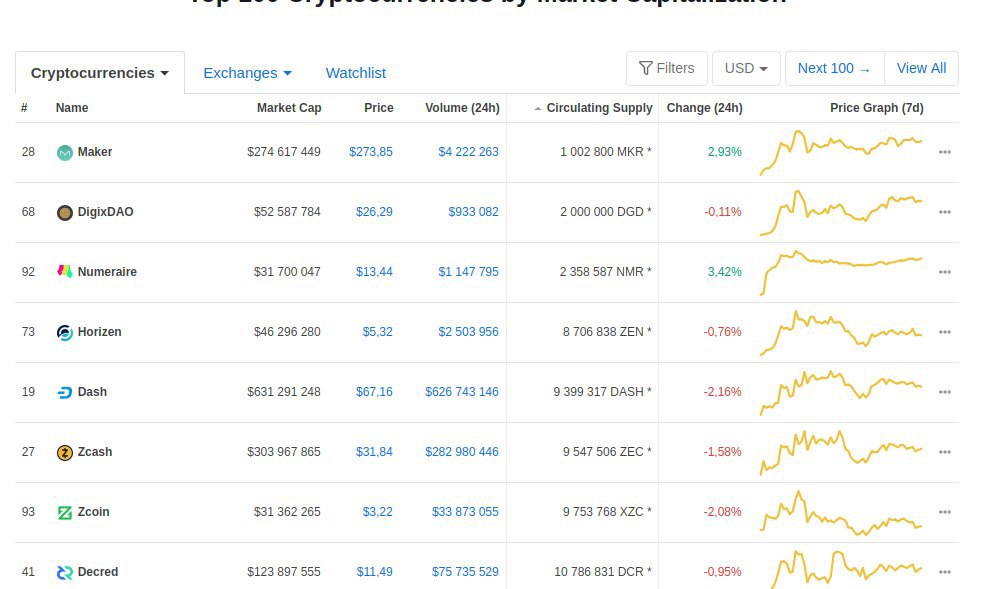 Кстати если сравнивать количество добытых монет. То у DASH их количество в разы а то и десятки раз меньше чем у остальных из топ-100. Зек в спину дышит)