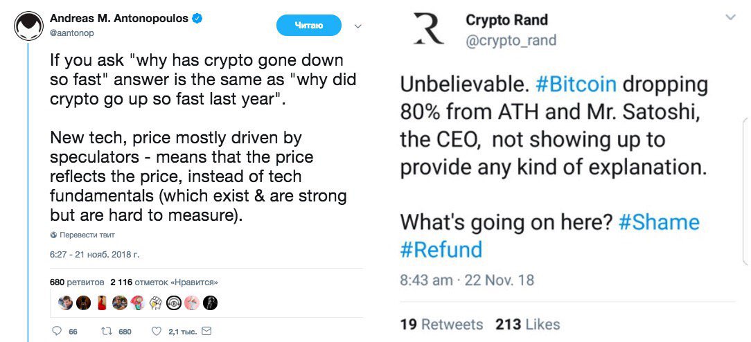 В следующих твитах он также добавил, что никто не жалуется, пока цена растет, но когда она падает, начинается поиск виноватых, хотя рост не был основан на фундаментальных причинах. Антонопулос указал и на то, что не является экспертом рынка и рекомендует инвестировать в навыки и образование.