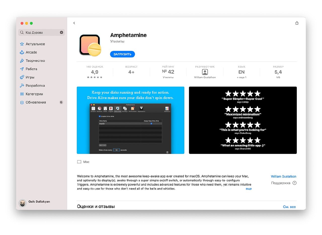 При этом Apple ранее упомянула приложение в истории App Store, а Густафсон много раз общался с сотрудниками компании по вопросам обновления Amphetamine, но никто до этого ни разу не возражал насчёт названия и логотипа утилиты.