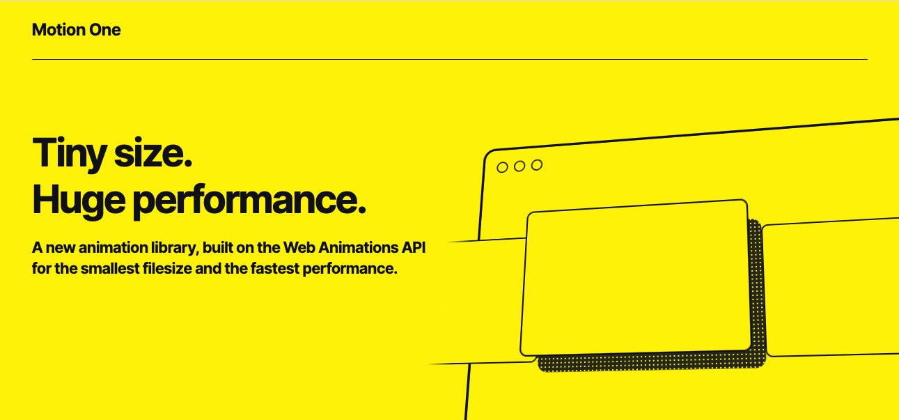 Motion One, новая библиотека для создания анимаций: существенно меньше популярных альтернатив (всего ~3 КБ), основана на Web Animations API, поддерживает таймлайны, написана на TypeScript, использует аппаратное ускорение → https://motion.dev