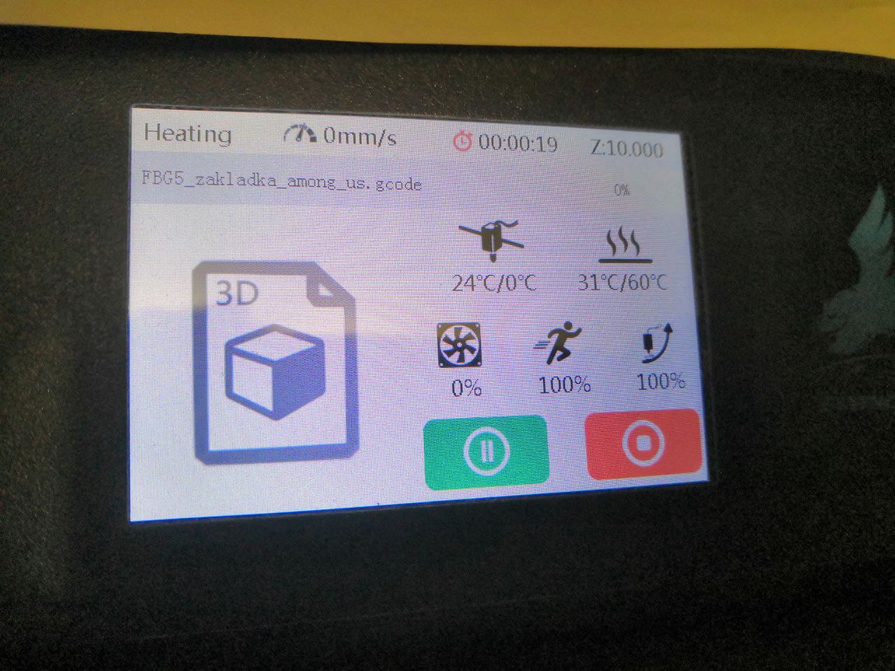 Всем вечер добрый. Может кто-нибудь подскажет что могло произойти? На экране вместо изображения модели просто значок. Все стоковое, медведь 5, Cura 4.8. Причем одна деталь напечаталась нормально, а следующая за ней уже в таком виде. И строка с процентами выполнения была сразу на 98%.