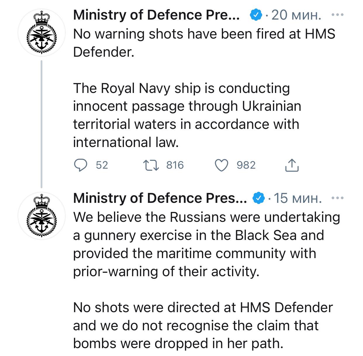 ▪️В 11.52 британский эсминец Defender пересек российскую границу и на 3 км вошел в территориальное море у мыса Фиолент. Он был предупреждён о применении оружия в случае нарушения границы, но не отреагировал.