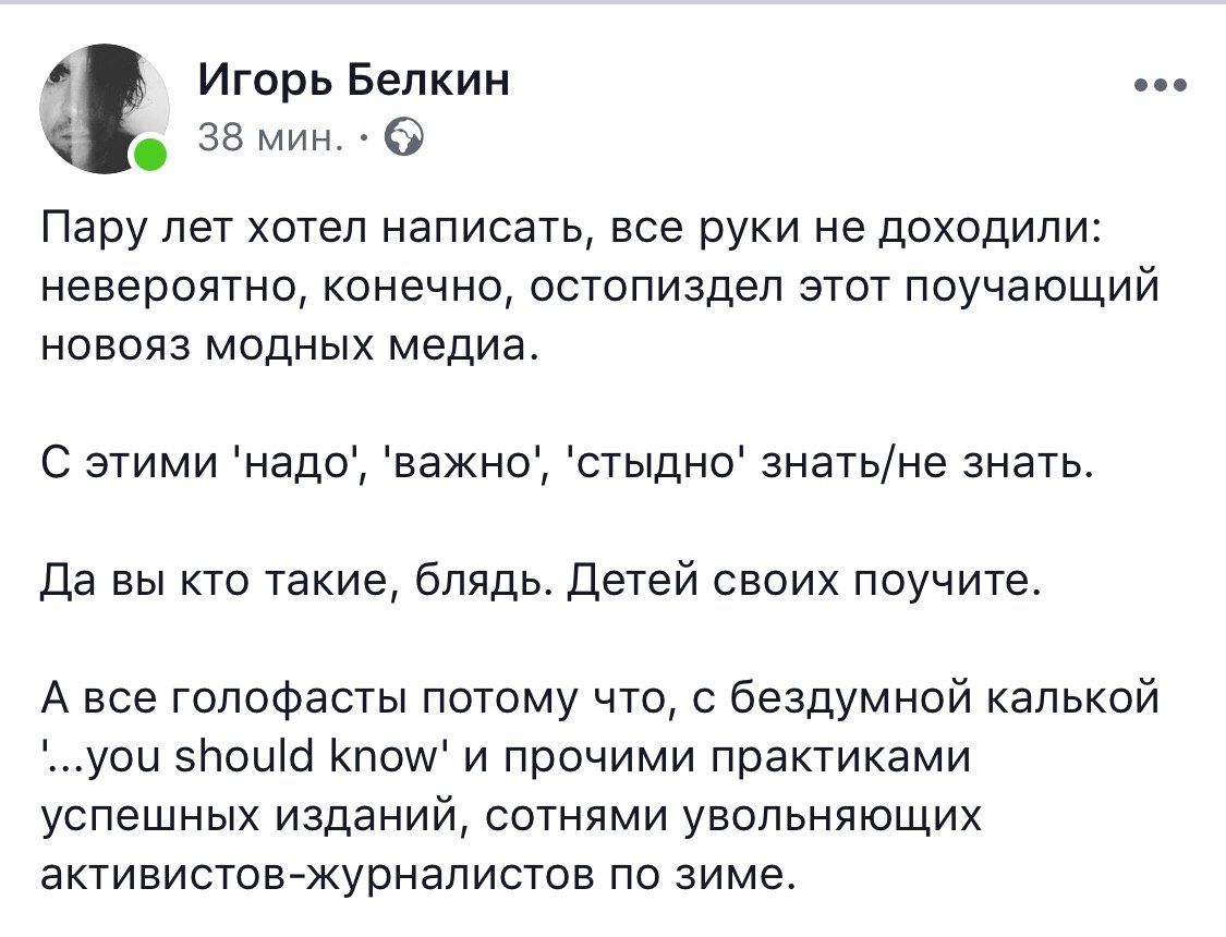Многие не поняли, что такое имел в виду Владислав Юрьевич, уважаемый, говоря о связях элит с «глубинным народом». А я понял. Я сейчас поясню на простом примере.