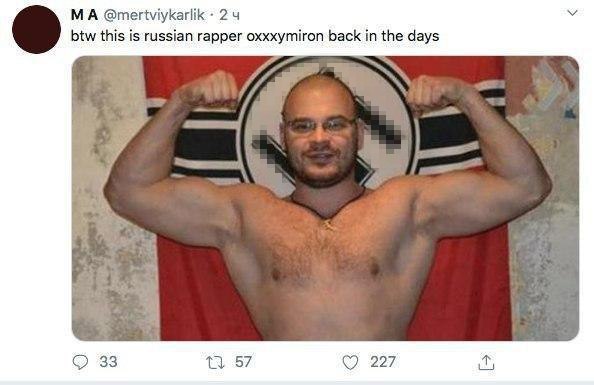 Но Талиб не повёлся: ответил, что так думать — это тоже расизм. После чего к нему понабежали наши отечественные рэперы и просто тролли, убеждающие, что русские хип-хоп-исполнители вправду все буквально гитлеры. В качестве доказательств показывали фото Тесака (с подписью, что это Oxxxymiron в юности), фото Михаила Боярского с Виктором СД (подпись: «Знаменитый нацистский рэпер Эмси Каналья»), Евгения Понасенкова с пистолетом и даже Тимати на фоне нацистского штандарта из фильма «Гитлер капут!».