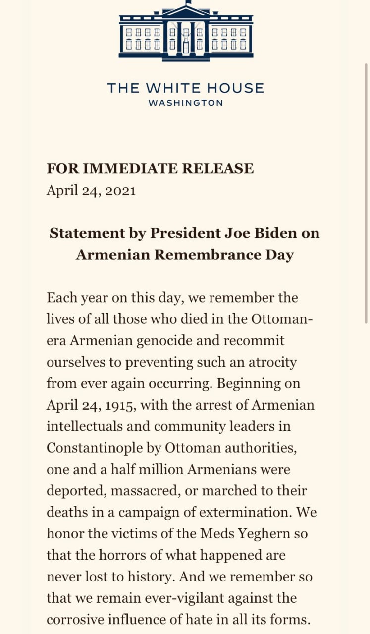 Странно читать о какой-то "вилке для Зеленского" в связи с признанием Байденом геноцида армян. Никакой "вилки" там нет. Влияние посольства США на Украине целиком и полностью доминирует не только над влиянием каких-либо других посольств, но во многих вопросах - и над офисом самого президента.
