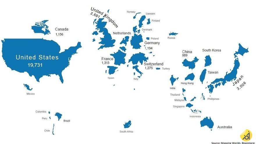 Картограмма, на которой размер регионов отражает численность их населения. "Новая Москва", будто опухль поразитирует и плавно отрасатает из Москвы в сторону Брянской.
