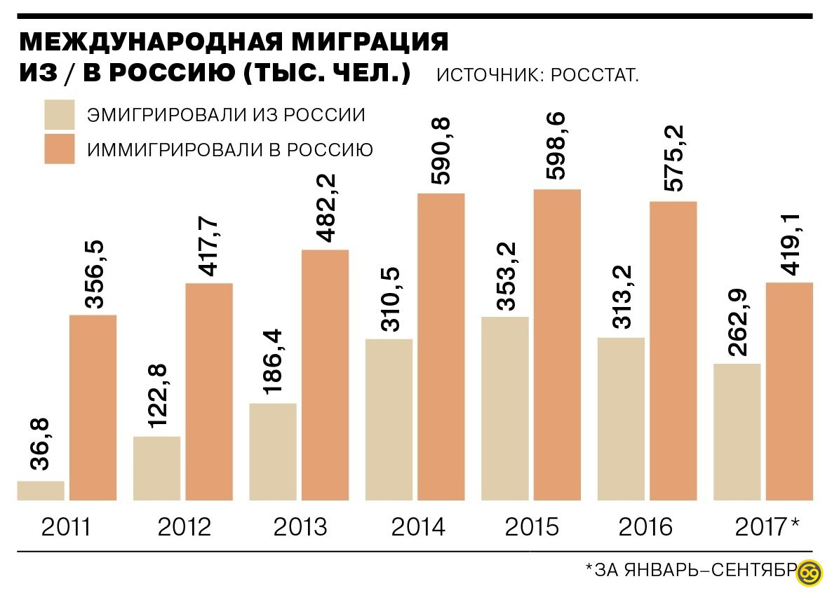 В Рашу за 2017 понаехало 419,1 тыс. человек.