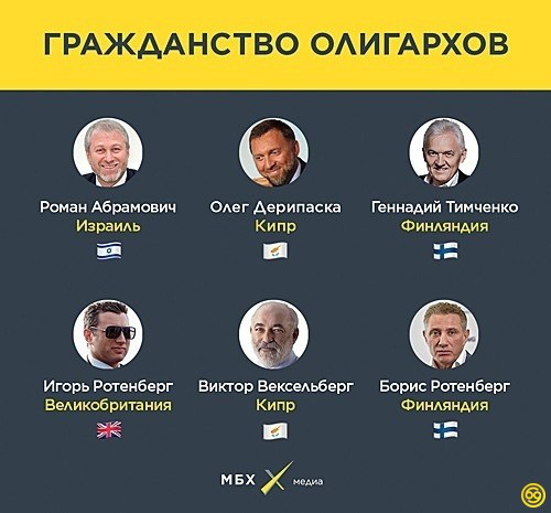 Роман Абрамович, оказывается, израильтянин, Дерипаска является киприотом, а Ротенберг - британцем. Ох уж эти вахтовики.