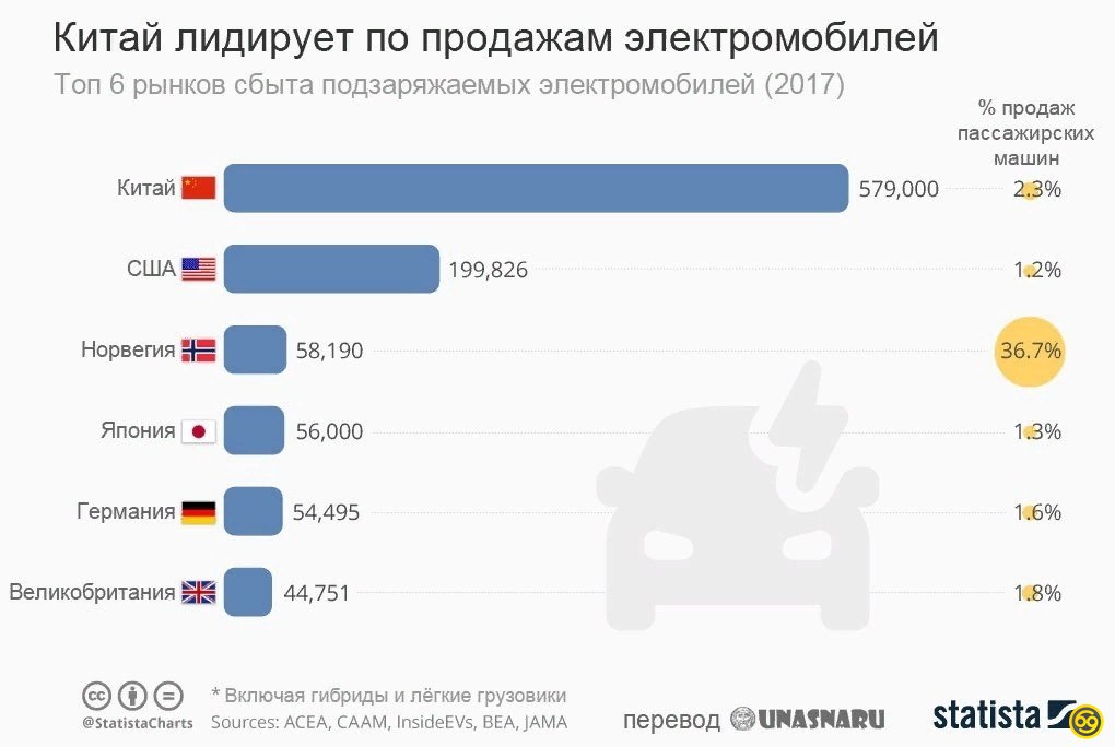 ▫️Страны-лидеры по продажам электромобилей. Не указано, сколько из заявленного числа проданных электрокаров в Китае являются Теслами...