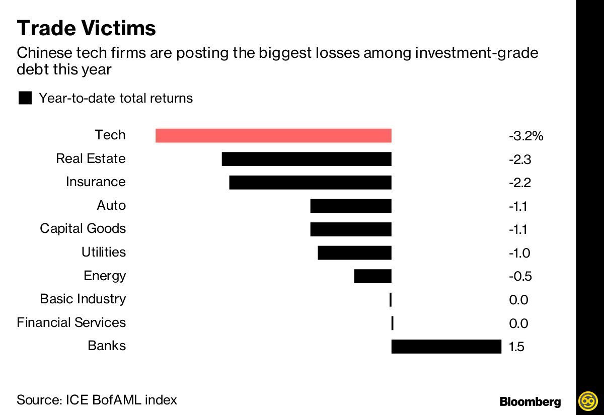 ​​▫️В ходе торговой войны, китайские технологические компании понесли самые большие потери. В выигрыше, конечно же, банки.