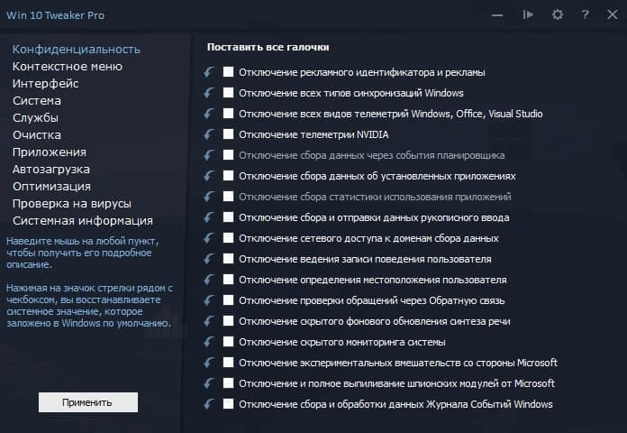 • Возможность создания собственных профилей настроек и загрузки готовых профилей, созданных другими пользователями с ресурса