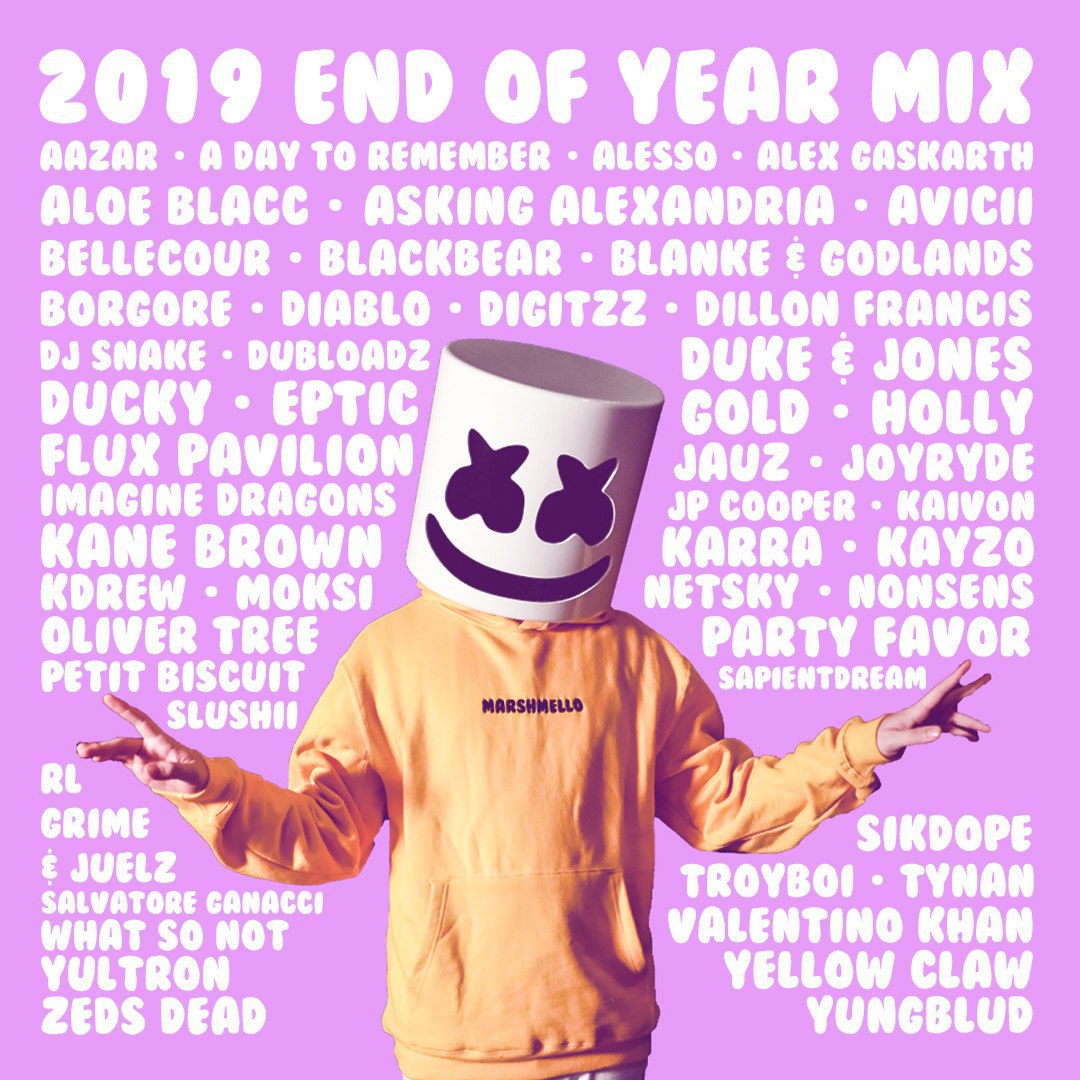 Marshmello впервые за 4 года выпустил микстейпПриурочив его к новому году артист собрал свои любимые треки за уходящий 2019-ый