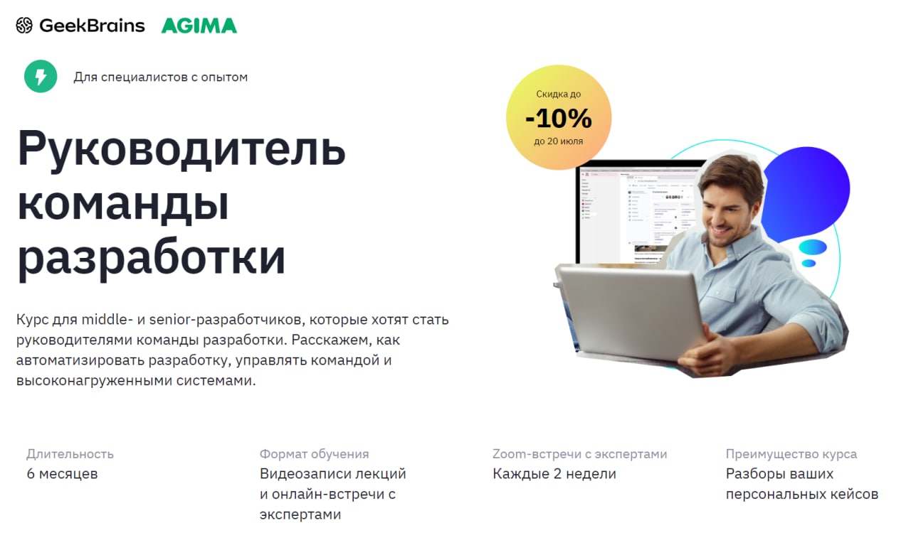 На этом курсе мы покажем, как структурировать ранее полученные знания и научим сопровождать проекты на всех этапах — от коммуникации с заказчиком и сборки прототипа до реализации и дальнейшей поддержки.
