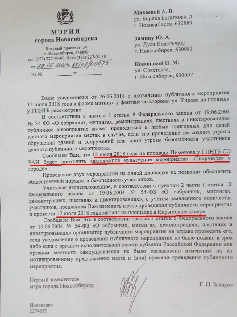 Новосибирцам не согласовывают митинг в заявленном месте