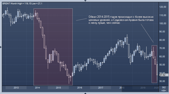 Bloomberg: Саудовская Аравия не может себе позволить «нефтяную войну» с РоссиейЕсли цены на нефть не смогут оправиться от недавнего обвала и останутся на уровне, который в два раза ниже заложенного в бюджете Саудовской Аравии, то экономика страны серьезно пострадает. Энергоносители составляют около 80% всего экспорта саудитов и дают примерно две третьи доходов бюджета. Если цена смеси Brent останется около $35 за баррель, то при прочих равных дефицит бюджета Саудовской Аравии в этом году составит около 15% ВВП, прогнозирует Abu Dabi Commercial Bank. По его оценкам, при таком сценарии валютные резервы страны иссякнут через пять лет, если ей не удастся найти другие источников финансирования.