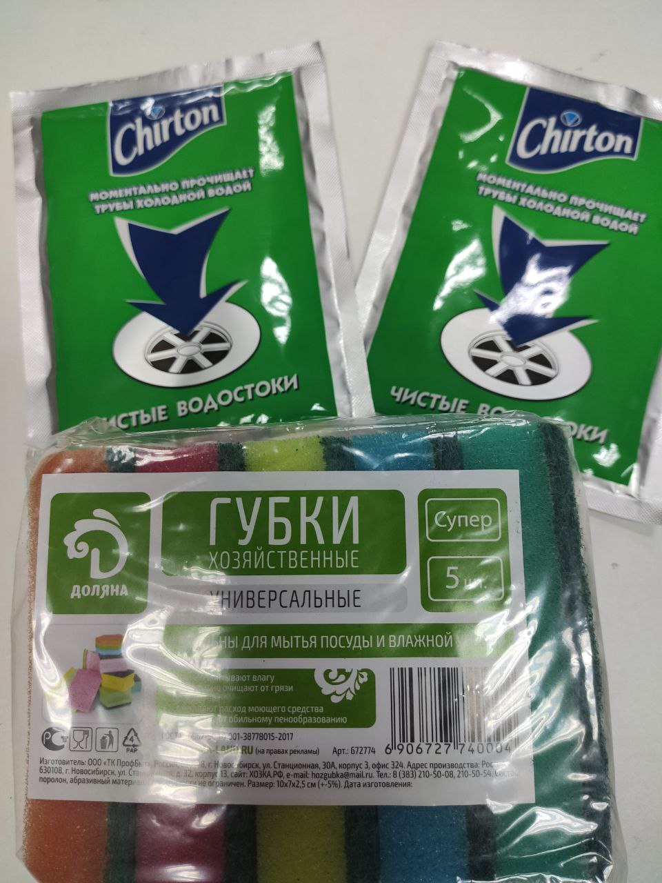 Набор губок, 5 шт + очиститель труб холодной водой Chirton