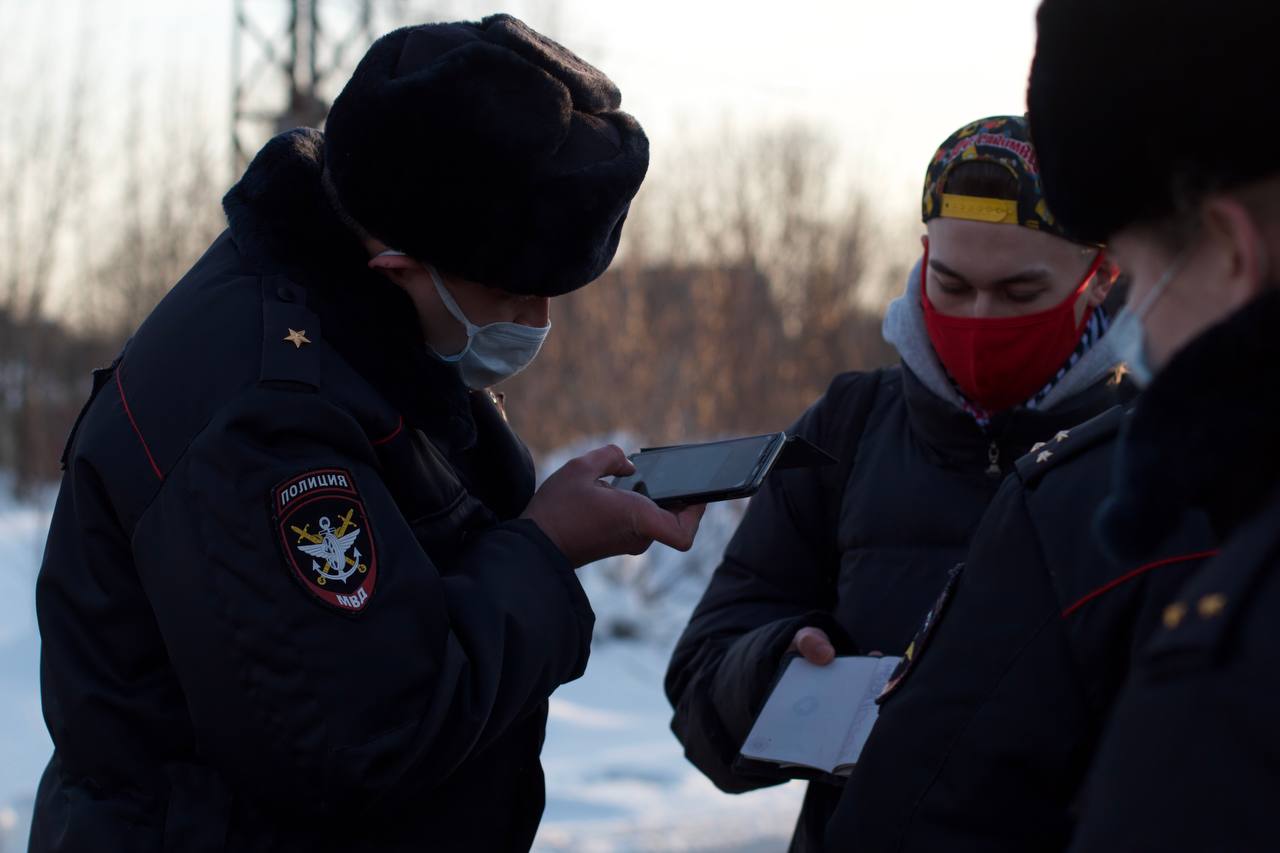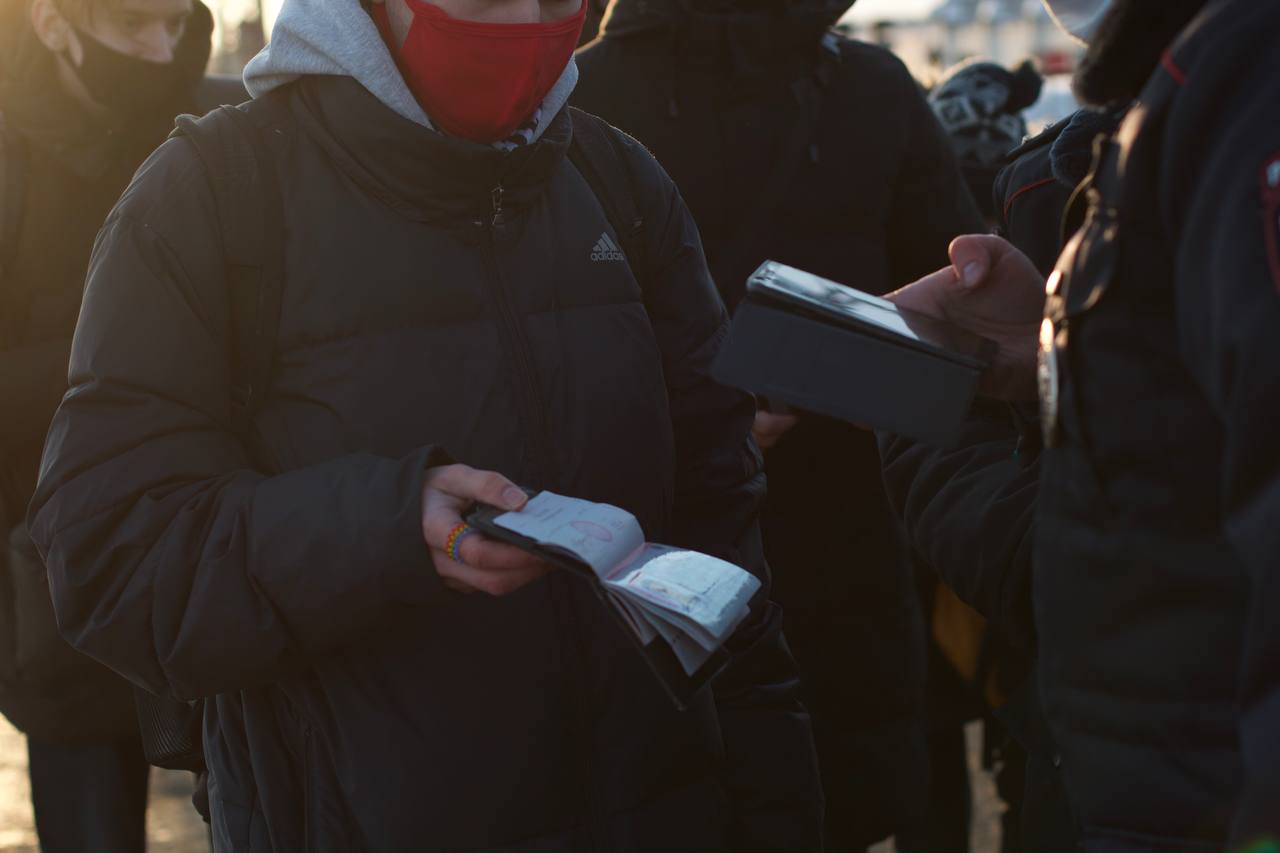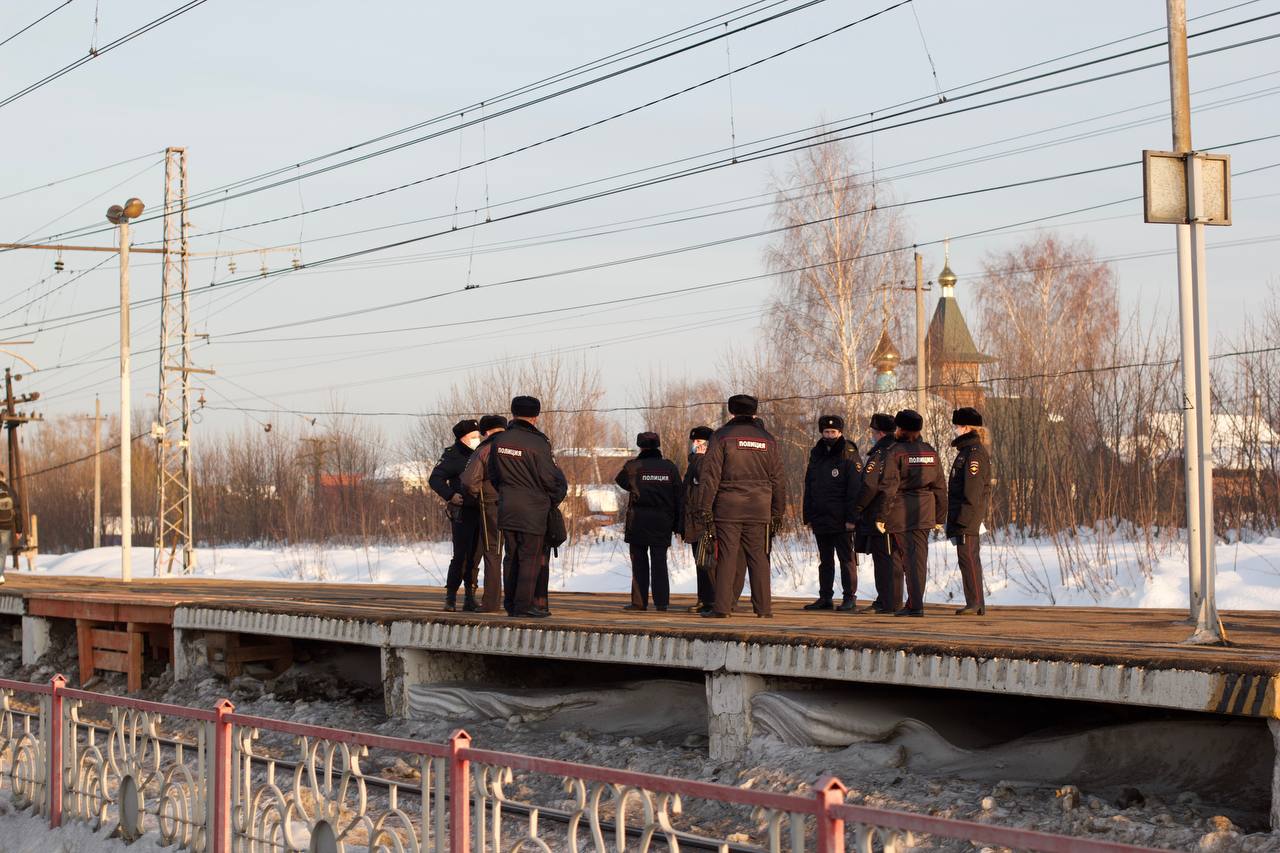 Полиция проверяет и фотографирует документы у всех, кто отправляется с платформы Покров в Москву.