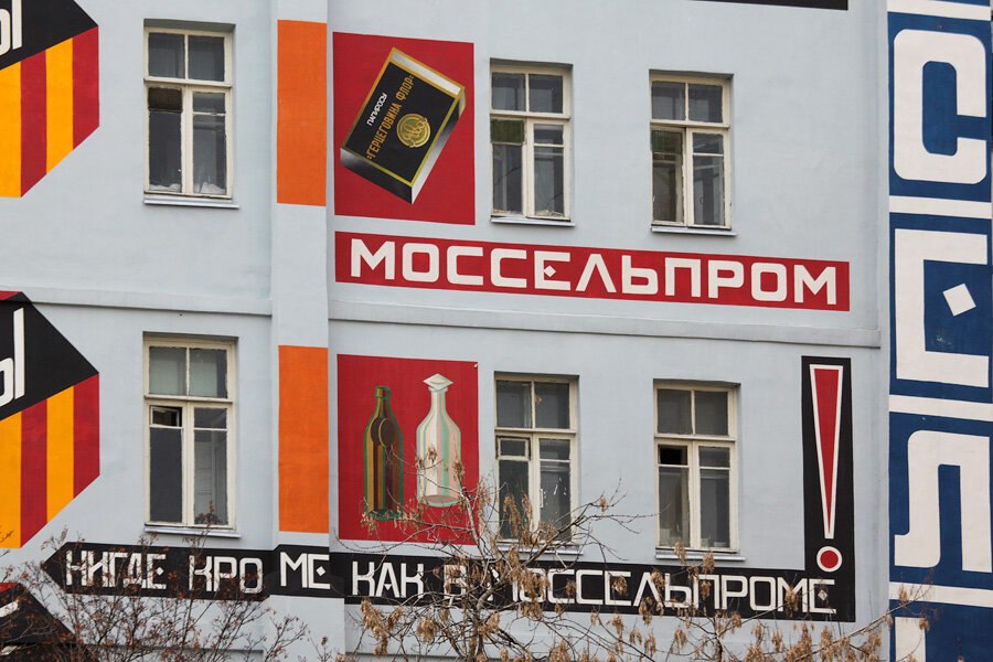 Самый большой рекламный плакат, созданный Александром Родченко и Варварой Степановой, — панно на торцовой стене дома Моссельпрома. Автор слогана «Нигде кроме, как в Моссельпроме» — Владимир Маяковский.