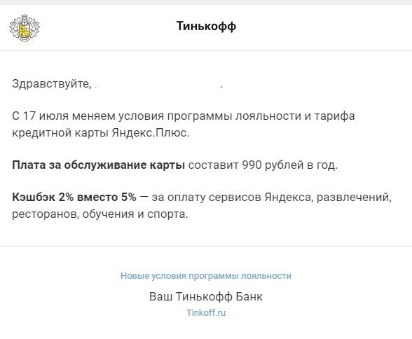 Карта была бесплатной, а станет платной. Кэшбэк был 5%, а будет 2%. Новые условия начнут действовать с 17 июля 📅