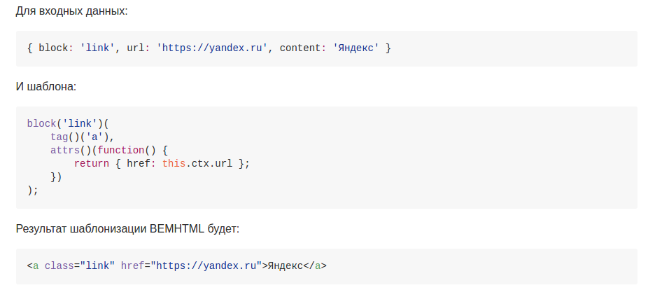 отлично, тем смотри и читаем ещё раз: * Базовый def шаблон сам вызывает остальные моды. Но ты можешь вернуть строку сам, вызывая apply('content'), apply('mix') (@yaroshevich ) * Конструкция applyNext возвращает результат работы следующего по приоритету шаблона в текущем режиме для текущего узла (official docs)