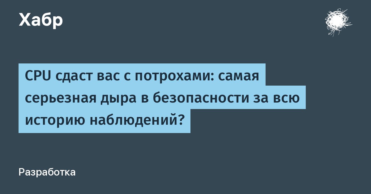 Исследователи Google опубликовали исследование «Reading privileged memory with a side-channel», в котором они описывают найденную ими аппаратную уязвимость, которая затрагивает практически все современные и устаревшие процессоры вне зависимости от операционной системы