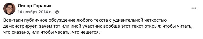 «Забавно, что за Джоан Роулинг в России переживают страстнее и громче, чем у нее на родине. Хотите узнать, что такое травля, — спросите, например, у активистки Дарьи Серенко, которую за один пост в поддержку мигрантов преследовало запрещенное в России «Мужское государство»*: тысячи угроз, адрес, слитый в сеть, физические преследования.Отличная колонка Лизы Биргер, почитайте.