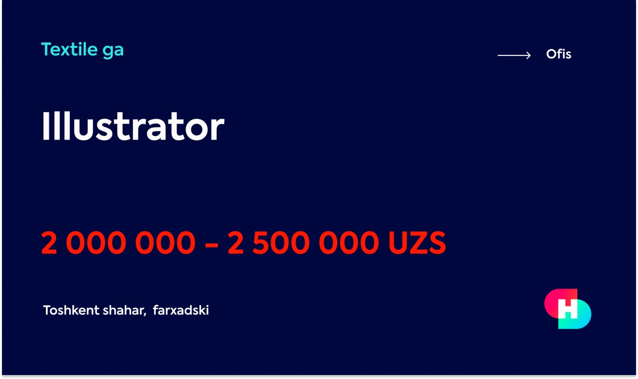 Ilustrator da ishlashni biladigon xodim kerak, yoshning axamiyati yoq 🎯